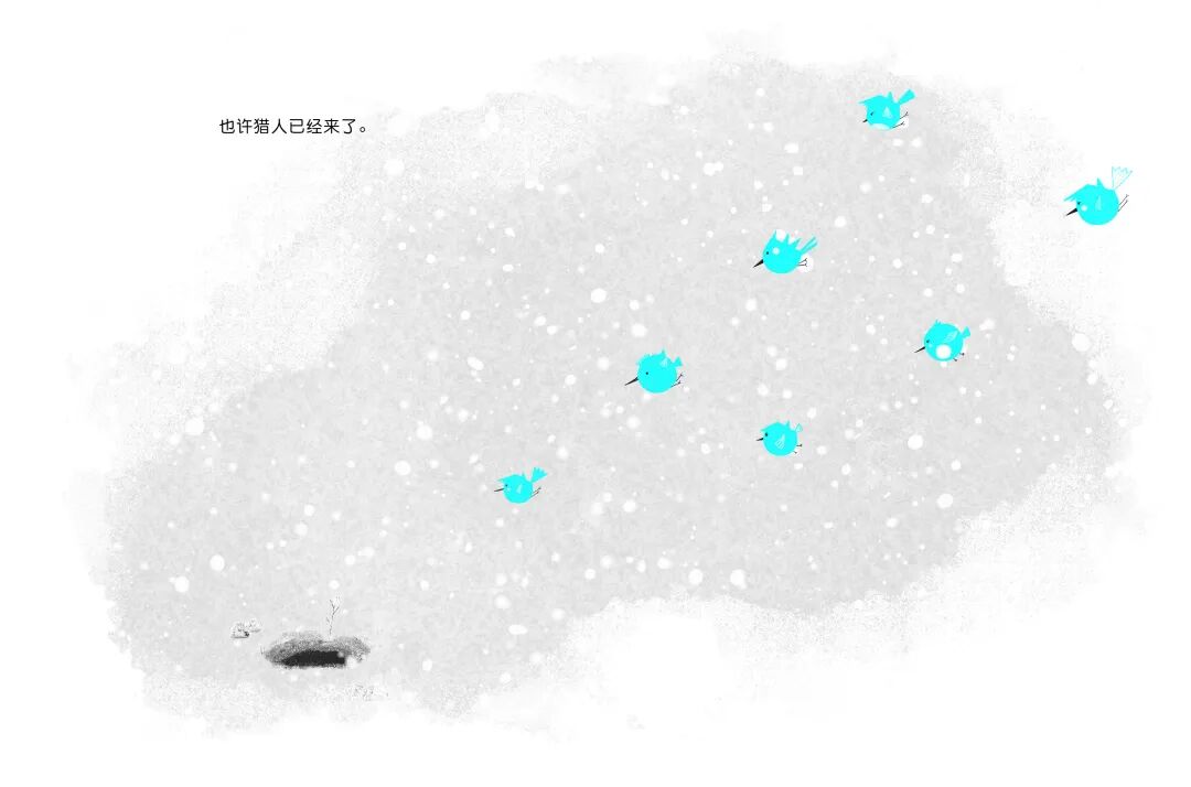 和畅团 著,信谊图画书出品,四川少年儿童出版社,2023年8月。适读年龄:3+这是一本带有寓言意味的原创绘本。小狐狸费尽心思,捉住了蓝色小鸟,小狐狸特别高兴,却掉进了猎人为它设计的陷阱。在陷阱中,狐狸觉得猎人很快就要捉住它了,而至少,小鸟会飞,可以逃脱,于是它放了小鸟。然而,正当小狐狸心想“猎人已经来了”时,却是更多蓝色小鸟来营救小狐狸的画面……