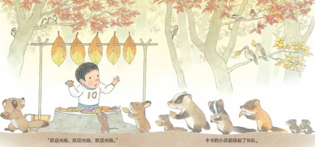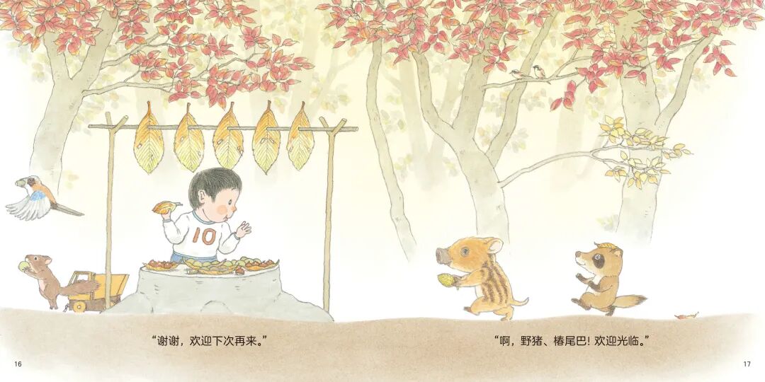 [日]岩村和朗 著,彭懿 译,接力出版社,2023年10月。适读年龄:2+这是《爱思考的青蛙》作者岩村和朗的低幼绘本新作,系列四册分别是《小卡车去海边》《小卡车去森林》《小卡车在下雪天》和《小卡车去原野》。在这四册故事中,岩村和朗向读者展示了孩子是如何仅凭一个小卡车,就打破现实与幻想的边界,在大自然的四季变换中自得其乐地玩耍。秋天,小男孩卡卡拖着他最喜欢的玩具小卡车到森林中,他捡拾落叶和各种果实,把卡车装得满满的,然后在一个大树桩上开起了小店,很快,小动物们陆陆续续拿着叶子钞票来买东西了。冬天,卡卡拉着他的小卡车来到雪地上,他把雪放进卡车,小车却陷入了雪中,田鼠、松鼠、野兔、野猪都来帮忙,大家挖出来一条通道。小动物们在通道上跟着小卡车跑来跑去,不知道为什么,特别快乐。《卡卡的小卡车系列》是岩村和朗从他的孙辈的游戏中获得灵感,进而创作的作品。和他的“14 只老鼠”系列、“爱思考的青蛙”系列相似的是,动物依旧在岩村和朗的作品中占据重要的角色。虽然主角是小男孩卡卡,但他手中拖着的小车就像是幻想世界的钥匙一般,他拉着小卡车走入四季,遇到各种各样像人一样思考、行动的小动物,他们一起玩着那些看起来毫无意义的游戏,快乐得热火朝天,像童年时的我们一样。