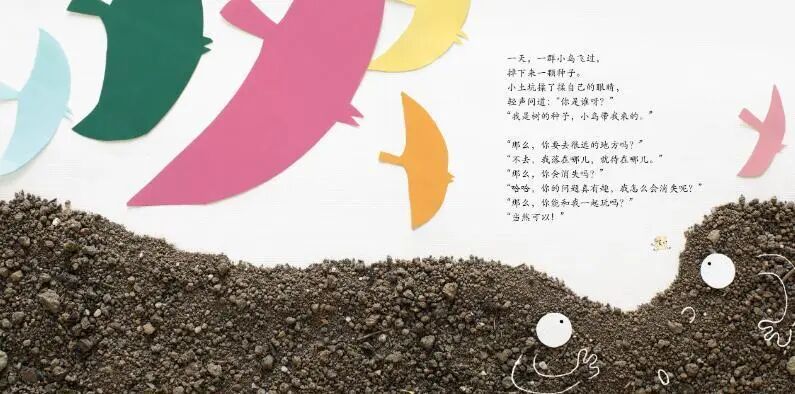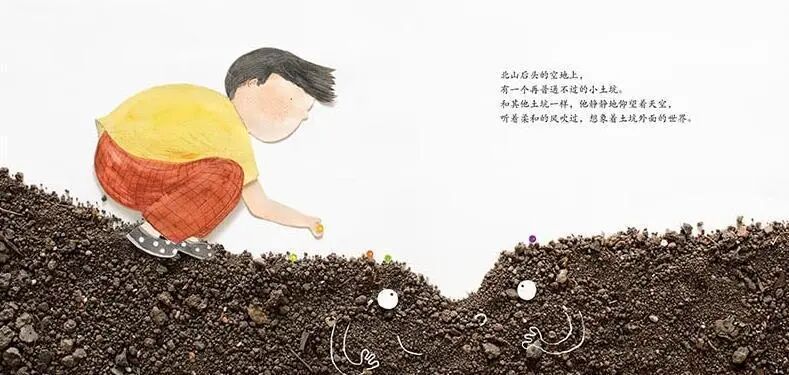 北山后头的空地上有很多小土坑,有一天,一个弹珠掉进了土坑里,小土坑又惊又喜,邀请弹珠一起玩,可是第二天,小男孩捡走了弹珠。小土坑很失落,期待能见到新的朋友。可是,陆续有新的朋友来到小土坑,也都离开了小土坑的怀抱。直到有一天,一只飞过的小鸟在小土坑里丢下了一颗种子......