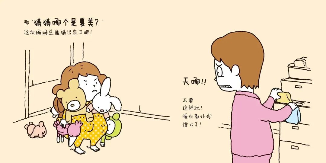 夏美缠着妈妈玩“你来比划我来猜”