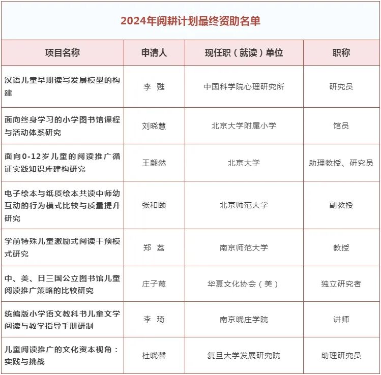 1月21日,2024年阅耕计划资助名单进行公示发布