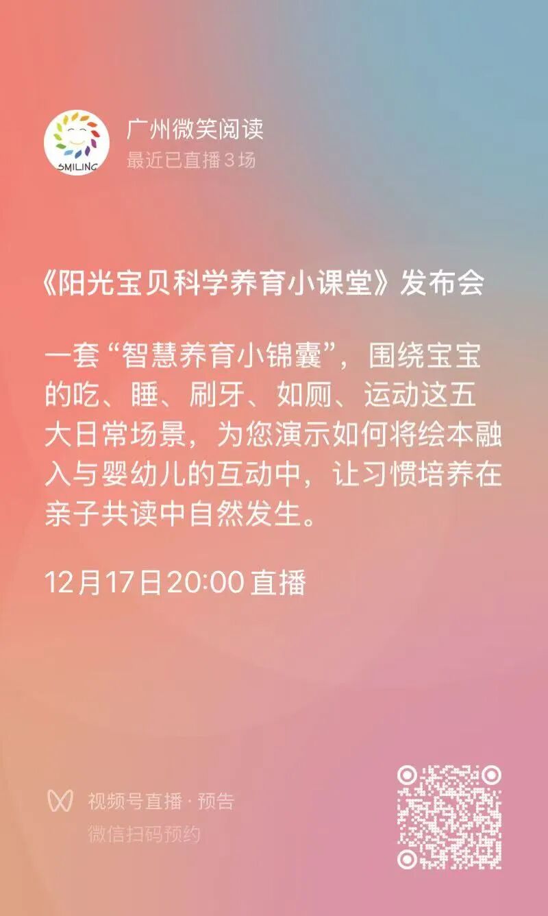 12月17日晚8点,欢迎来到《广州微笑阳光宝贝科学养育小课堂》电子课程包的线上发布会!