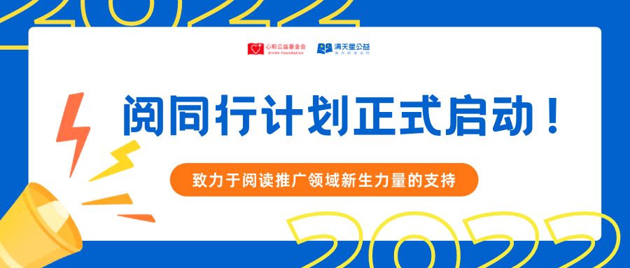 阅同行计划是由心和基金会与满天星公益发起的资助项目,致力于阅读推广领域新生力量的支持,期望通过资金资助、陪伴支持、伙伴网络等方式,挖掘和支持国内具有发展潜力的初创型阅读推广类公益组织。
