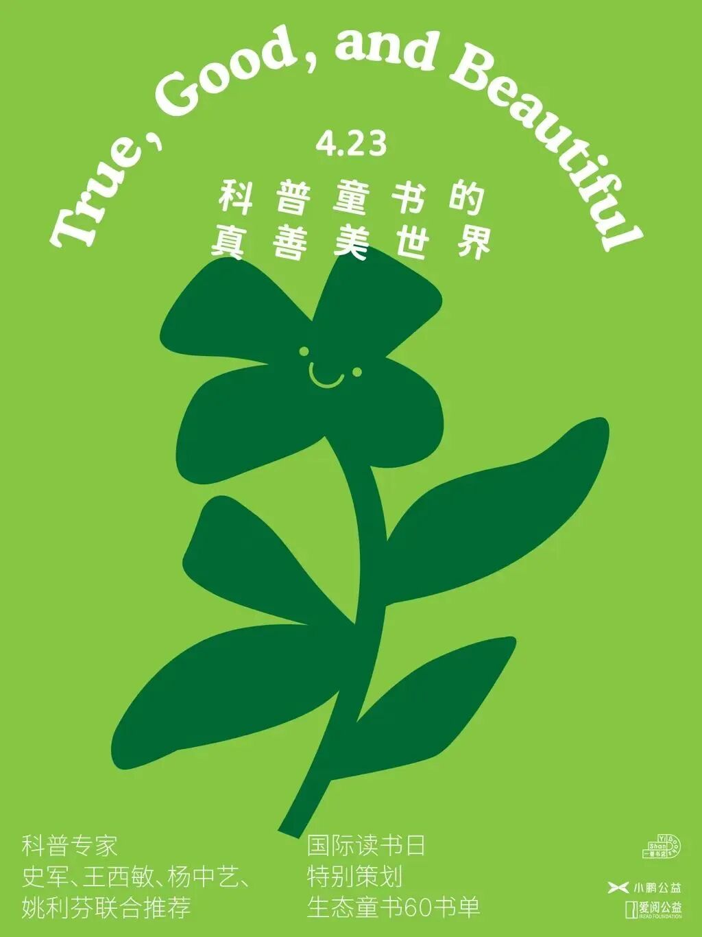 4月22日“世界地球日”、4月23日“世界读书日”比肩到来,一善Kids联合深圳市爱阅公益基金会、广州市小鹏公益基金会共同推出“科普童书的真善美世界”特别策划,分别邀请到“爱阅童书100”和“生态童书60”项目的评委——中科院植物学博士、科普作家史军,中国科普研究所副研究员姚利芬,中山大学生命科学学院教授、博士生导师、广东省环境教育促进会会长杨中艺,上海辰山植物园研究员王西敏 4位科普专家,与大朋友、小朋友一起从小小的切口进入大世界,去探索书籍背后的趣味、启发和更大的可能。四位专家的重磅推荐均入选“爱阅童书100”和“生态童书60”书单。