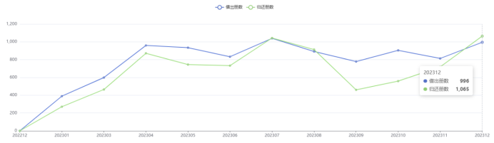 图1:海原睿德公益图书馆2023年月度借阅数据折线图