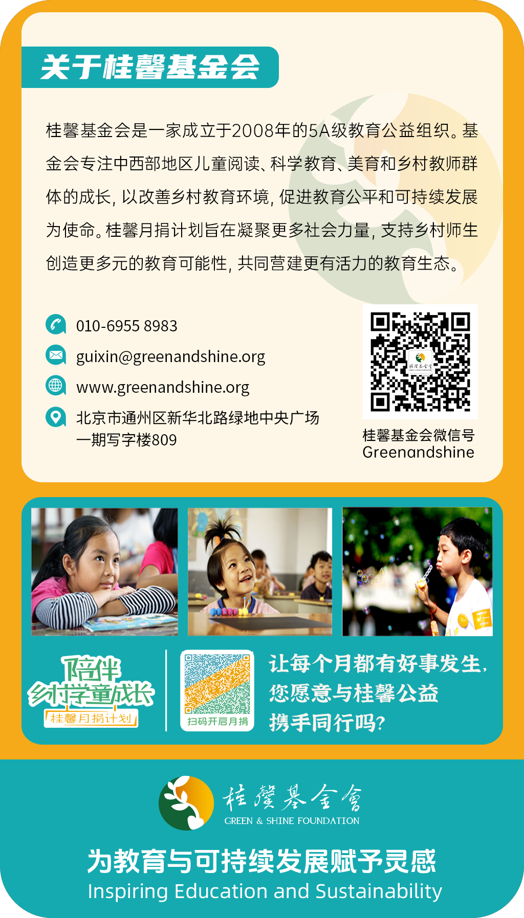 此外,基金会还将组织大学生志愿者到部分学校开展“悦读夏令营”,并通过图书更新、教师阅读培训、基金会回访、学校反馈等方式来促进学校对图书的有效利用。基金会希望在4年项目周期内,通过学校自己的努力、大学生志愿者的参与以及教师外出访学、县域培训等方式,让桂馨书屋真正融入学校师生的生活,成为学生扩展知识、开阔视野、提高素养的重要平台。