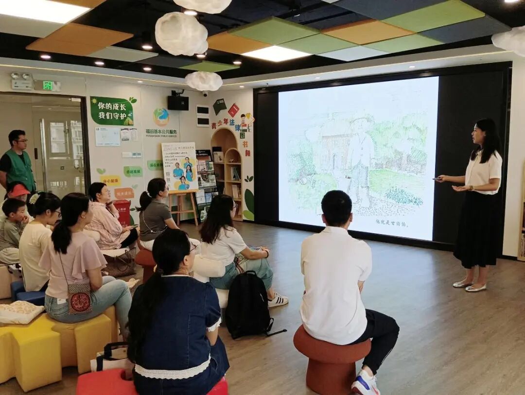 联合福田未保服务中心组织空间站站长开展“法治绿芽”绘本讲师培训分享活动,共同探讨如何通过绘本开展儿童法治教育。