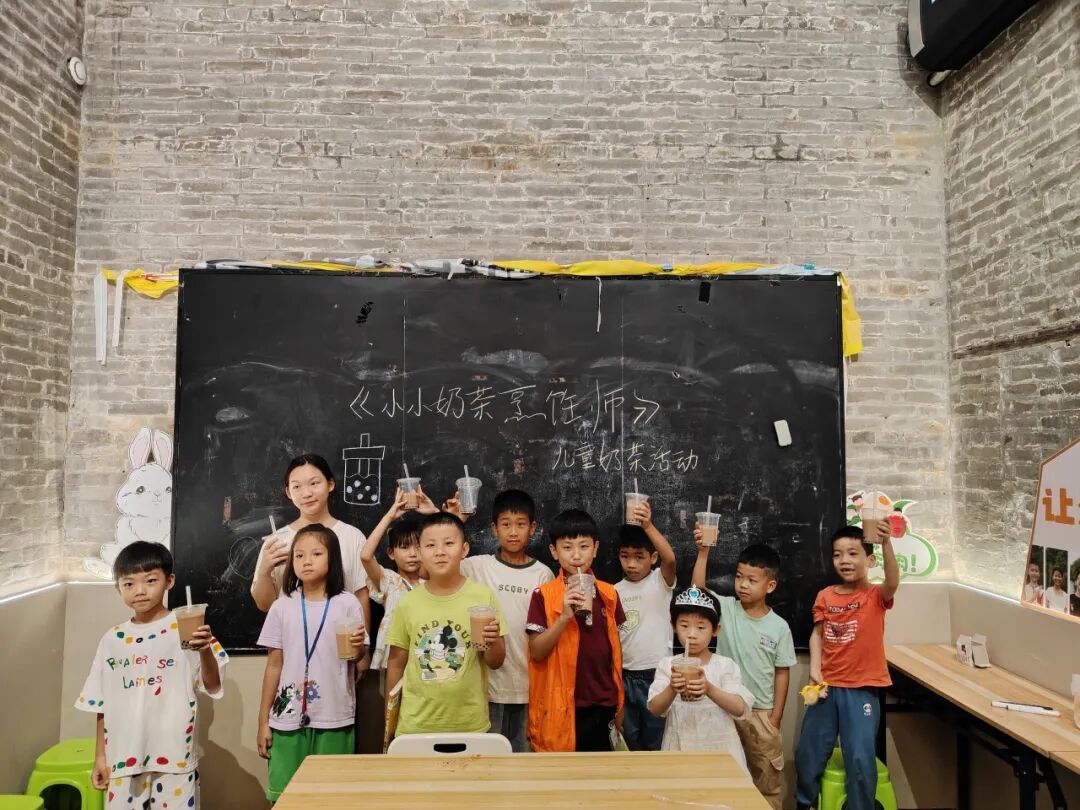 11位小朋友化身厨房小能手,亲手制作珍珠奶茶,解锁美食魔法,收获甜蜜成就感。