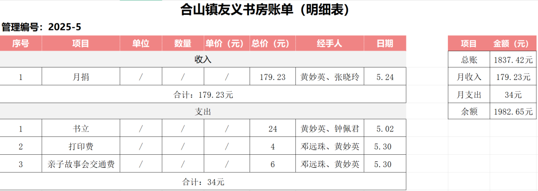 5月爱心月捐日活动获得捐赠共179.23元,共支出34元。每月的23日是书房的爱心月捐日,如果你也想为乡镇阅读推广出一份力,欢迎联系书房管理员哟~