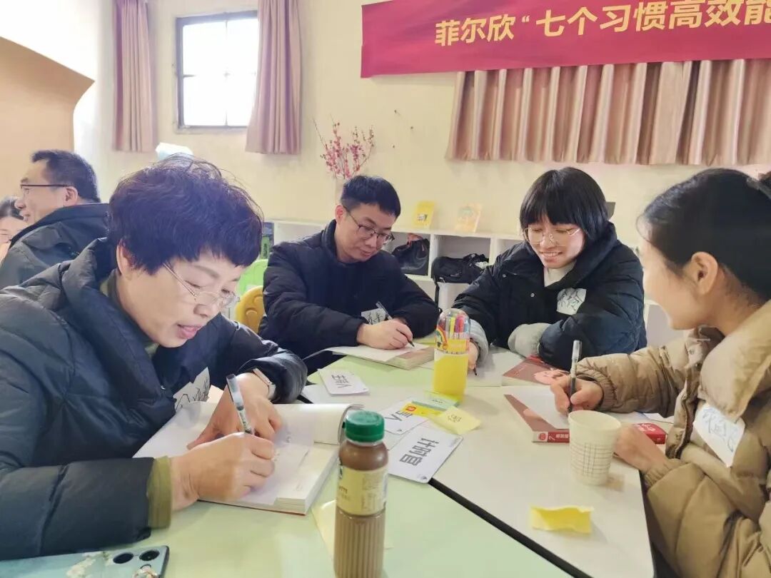 为增加图书馆的收入,梅里有为图书馆专门为嘉兴市菲尔欣制衣股份有限公司的骨干们定制了一场21天《高效能人士的七个习惯》共读读书会。