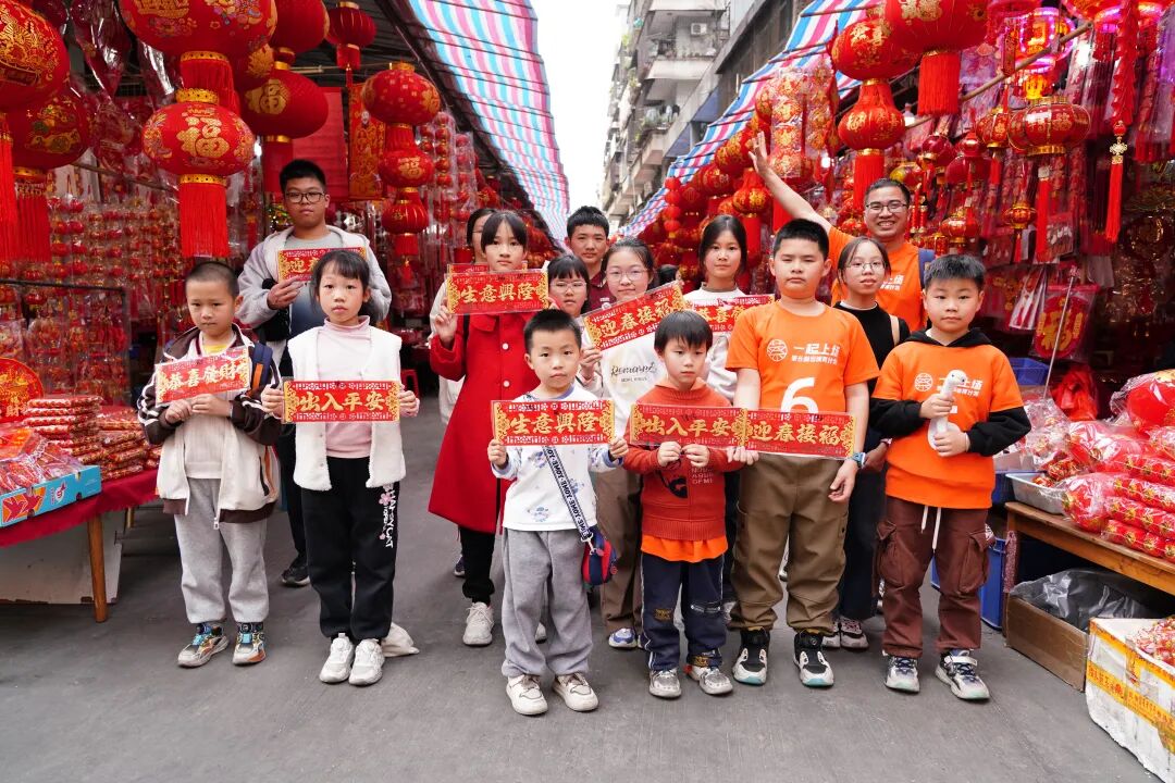 逛花市接好运,巧手剪出红火窗花。传统年俗与现代活力交织,孩子们把“福”字带回家,也把文化自信刻入心间。