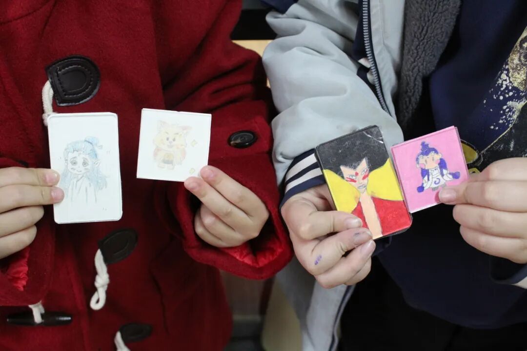 到了动手环节,大家拿起画笔,绘制自己喜欢的角色:有的画了少年英雄小哪吒,有的选择了帅气的敖丙,还有人钟情于憨厚呆萌的结界兽……最后,大家将画作小心翼翼地组装,一个个独一无二的冰箱贴就此诞生!
