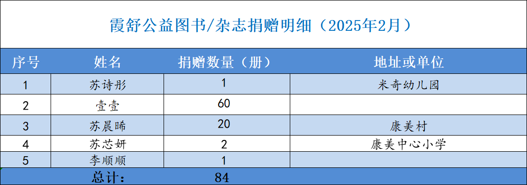 感谢各位爱心伙伴对我们的支持,2月份霞舒公益运营简报请阅:霞舒公益2025年2月份回顾。霞舒公益2025年2月份的收支情况公示如下: