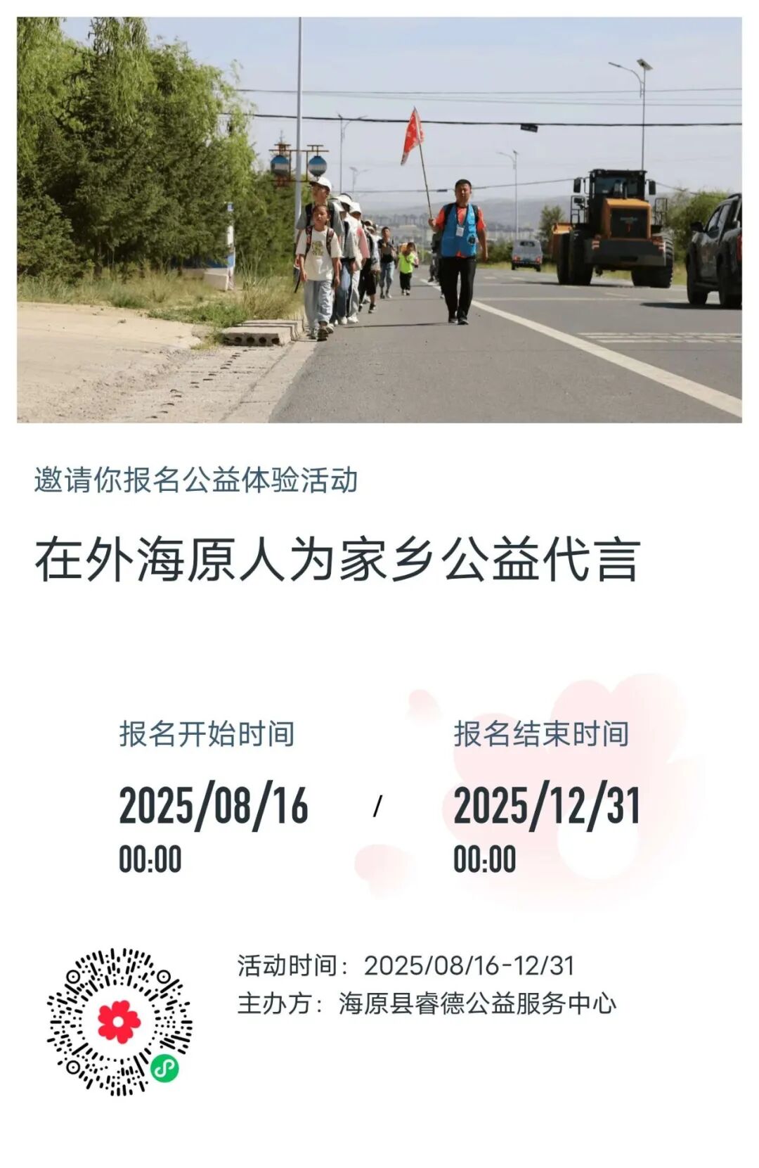 8月16日,海原睿德公益发起“在外海原人为家乡公益代言”活动(持续招募中)。