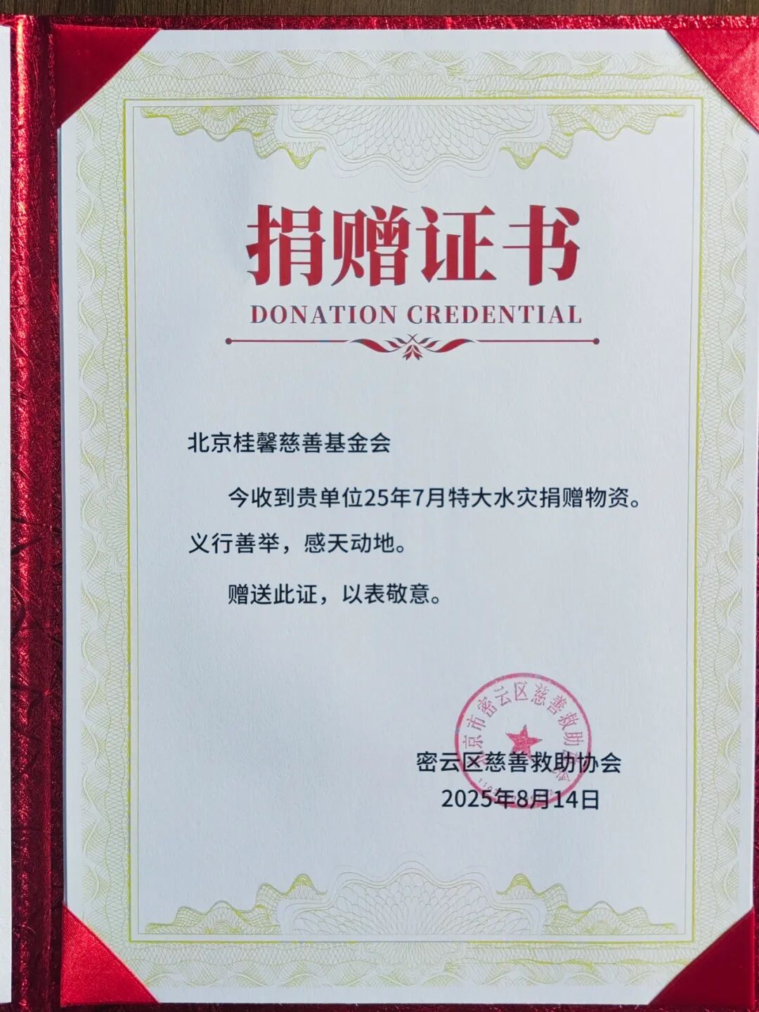 8月1日,在北京市民政局动员和领导下,桂馨基金会向密云区慈善救助协会捐赠1000瓶次氯酸消毒液,用于救灾一线和安置受灾群众使用。近期,北京市密云区等地遭遇特大暴雨,最大降雨量超300毫米,引发山洪、泥石流等灾害,导致多个村镇道路中断、通信电力受损,部分村庄被淹。后续,桂馨基金会将持续关注灾情,及时了解后续救援需求,与受灾群众携手共渡难关。
