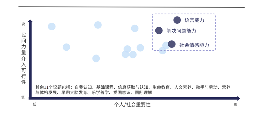 最终筛选出三个重要性高且可行性强的议题:语言能力、解决问题能力和社会情感能力。