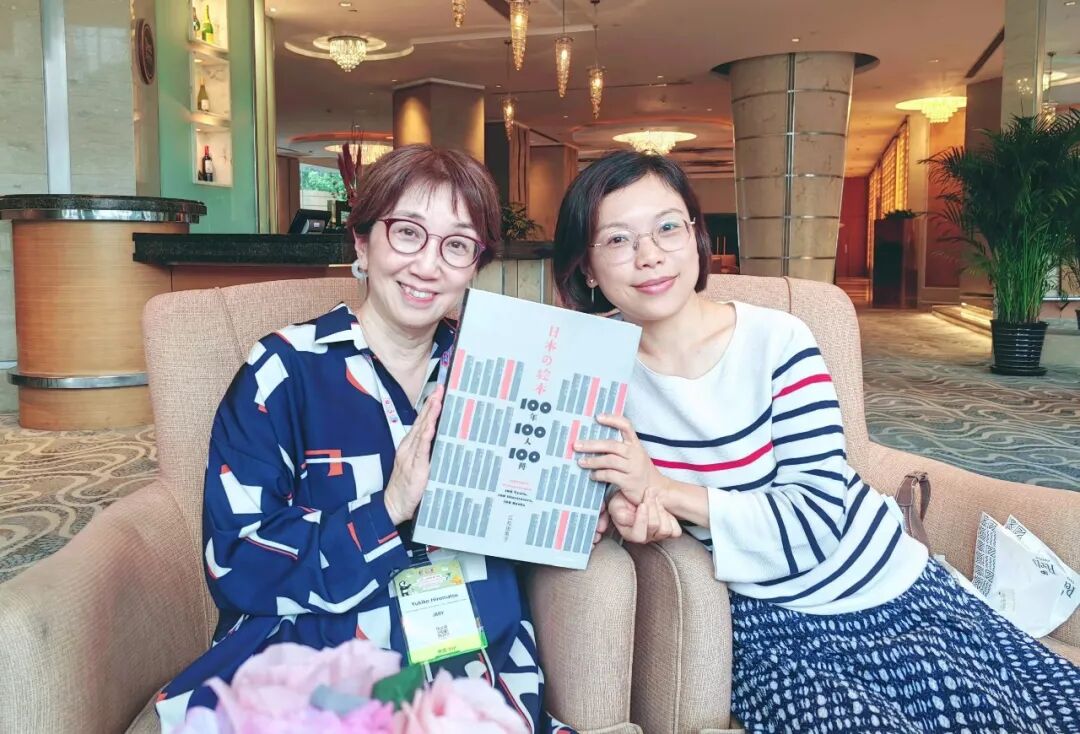 和广松老师的珍贵合影,我们手里拿的正是她的新作『日本の絵本100年100人100冊』,超大开本,沉甸甸的。