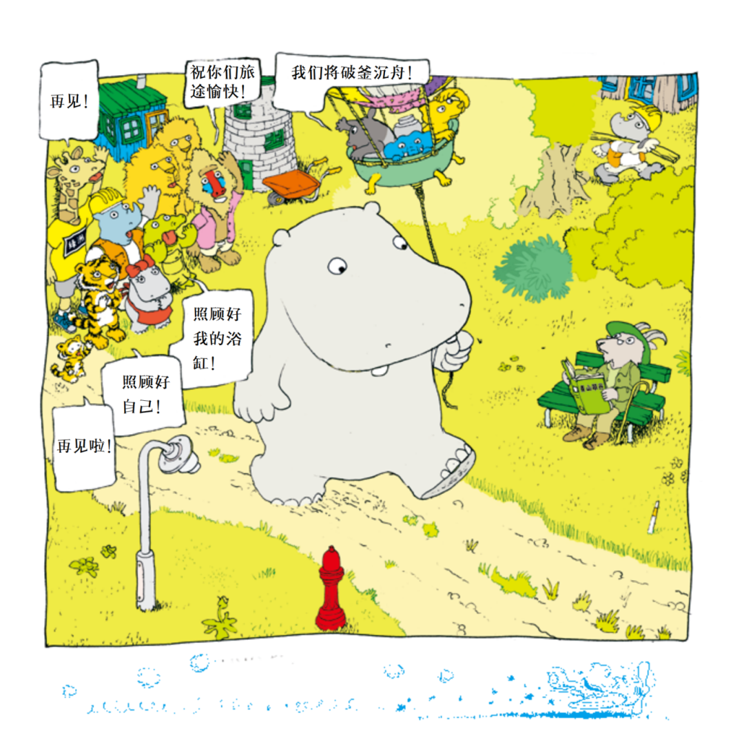 斯特里德:我不知道。这也不是很有原创性的点子。很多其他童书里也有动物。我自己很喜欢动物,它们能和世界上所有的人产生连接。如果画一个人,你必须考虑那个人的肤色、种族等问题,而动物则具有某种共通性。我也觉得动物比人类更可爱,因为它们更天真。
