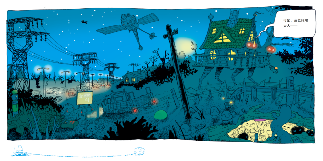 斯特里德:我一开始只有一个模糊的想法,没有任何计划就开始创作了。我是从书的中间部分开始画的,就是动物们正在建造巴士的那一页,但我当时不知道故事是关于什么的。然后我向前寻找答案。它们正在建造这辆巨大的巴士的话,必须得有一个充分的理由。然后就有了关于需要治愈生病的孩子的故事。再往后看,大巴士建好以后,它们需要开始一段漫长的旅程。于是就有了冒险的部分。我通常没有文稿或具体的计划,大部分时候我只是跟随直觉。